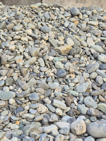Mix of grey, white and green stones. Great for garden paths and decorative areas.